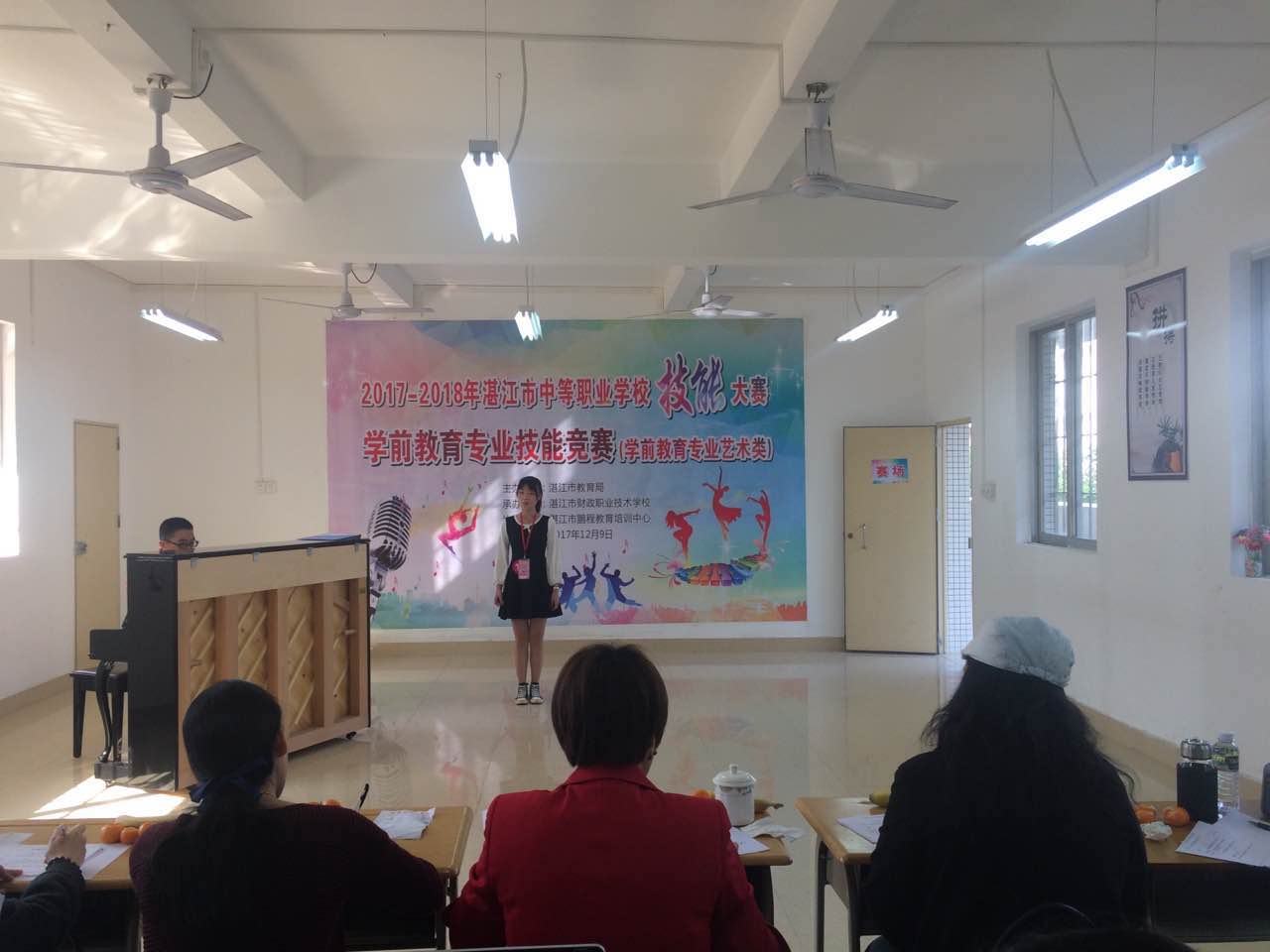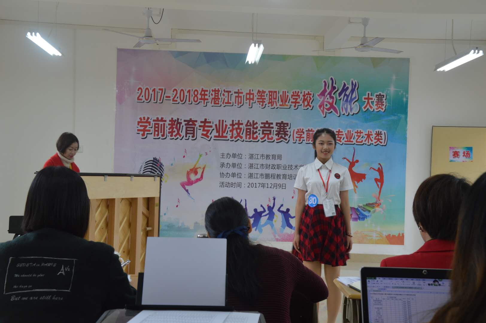 12月9日,湛江市中等职业学校学前教育专业技能大赛在湛江市教育局的统一领导下,在我校(湛江市财政职业技术学校)拉开帷幕。比赛项目包括幼儿艺术教育(音乐)和幼儿园语言活动设计两个项目。