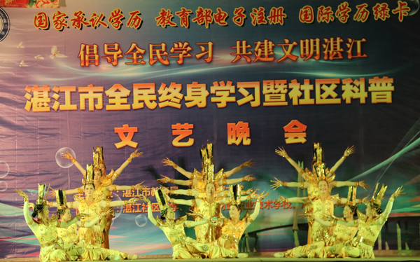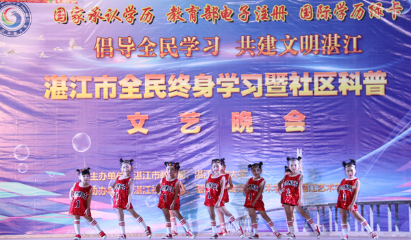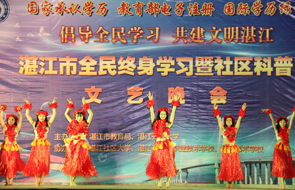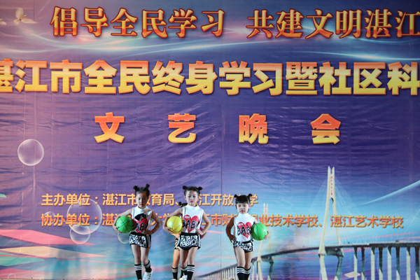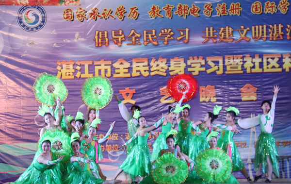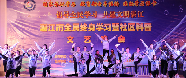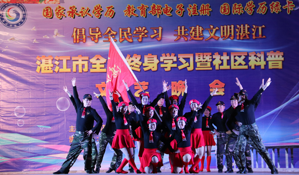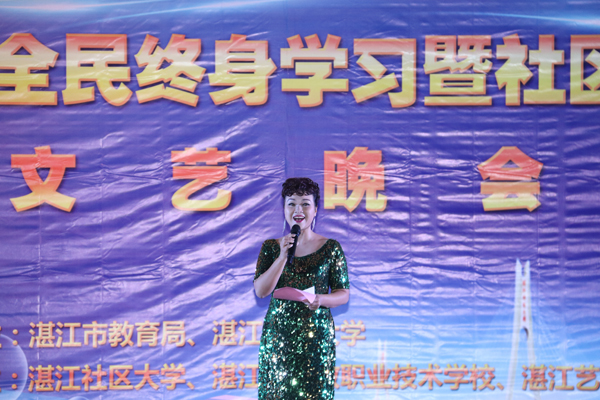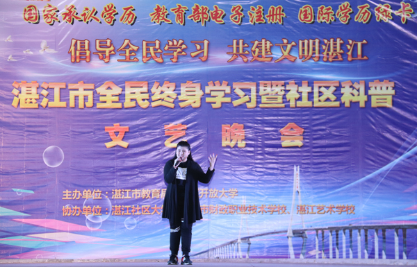 本次晚会主题是"倡导全民学习,共建文明湛江",倡导继续教育,推进全民学习、终身学习的学习型社会建设。