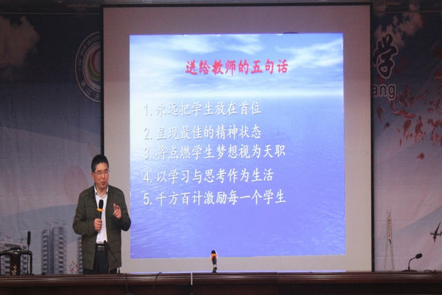 在讲座的最后,他特别指出,教师要永远把学生放在首位,呈现最佳的精神状态,将点燃学生的精神视为天职,以学习与思考作为生活,千方百计激励每一位学生?;岢∠炱鹆嗽尥恼粕痪诙?。