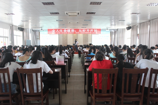 5月31日下午,湛江开放大学在主校区礼堂开展湛江市"全人健康进校园进社区进乡村"科普系列活动--全人生命健康,从好牙开始。湛江开放大学副校长李聪睿出席并主持活动。全校师生共300余人聆听了口腔健康讲座。