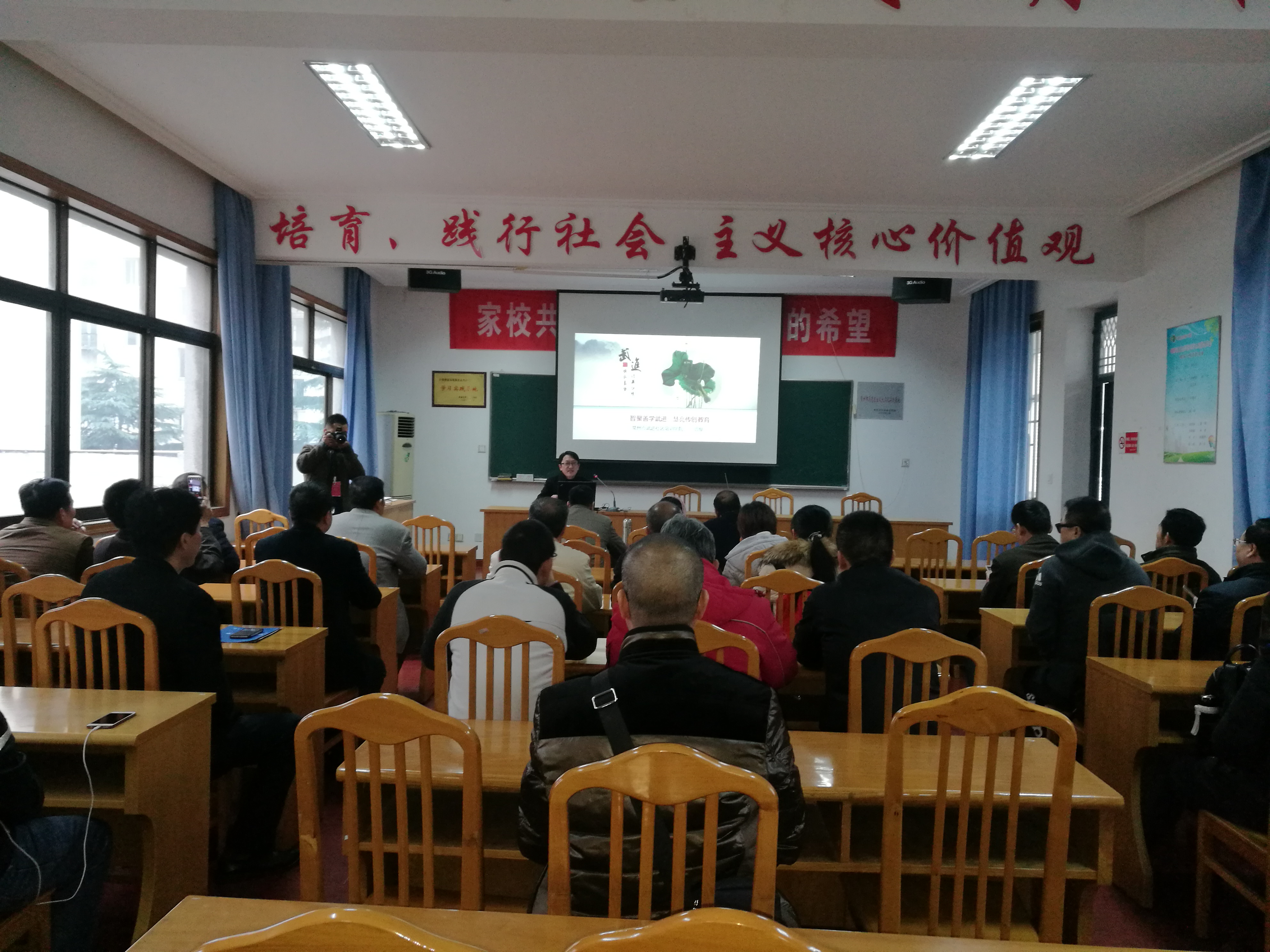 此外,江苏开放大学资源建设中心主任孙旭及社会教育处处长钱旭初分别就"开放大学资源建设工作的思考"、"江苏社区教育现状与发展"两方面进行讲述介绍。