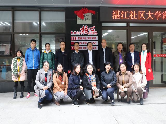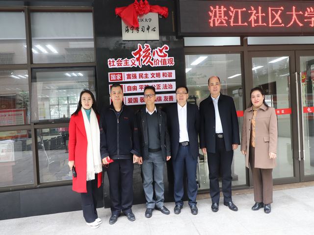 在2018年湛江市全民终身学习活动周期间,湛江开放大学、湛江社区大学联合海滨街道的海宁社区,于12月11日在海宁社区举行隆重的挂牌仪式,成立"湛江社区大学海宁学习中心"。湛江开放大学党委书记、校长李连红、副校长王康生,海滨街道办事处主任李华杰、海滨街道党工委副书记卢完富、海宁社区党支部书记赖红月和社区工作小组成员参加了挂牌仪式。
