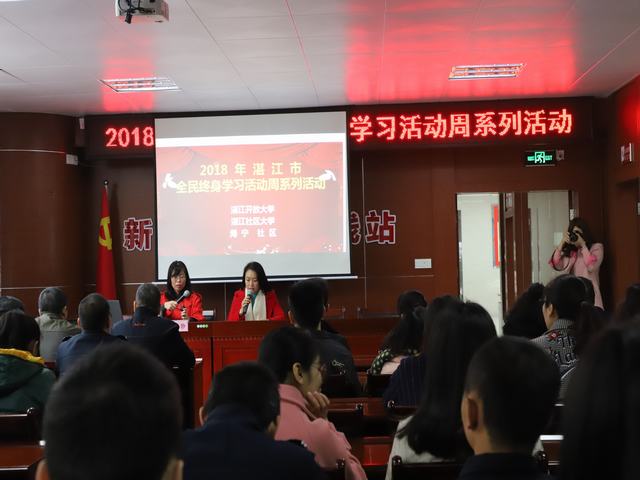 海宁学习中心挂牌仪式和社区治理讲座作为2018年全民终身学习活动周系列活动,受到社区的热烈欢迎和支持,使湛江开放大学、湛江社区大学社区教育工作正式进入社区,对接下来学??垢飨钌缜逃疃髁擞辛Φ闹С牛酶嗟陌傩站用袷芤?。