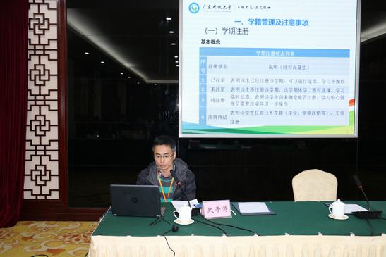 在教务管理业务培训上,奥鹏公司对教务管理系统作了整体介绍,广开计划科陈晓曦耐心介绍了教务管理平台选课的业务详情,广开学籍科史普涛紧随其后就学籍业务介绍及注意事项展开阐述。