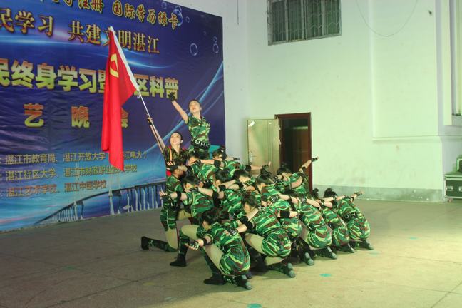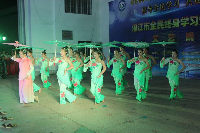 12月15日晚,湛江市赤坎区体育场开心广场彩灯闪耀,笑语飞扬。由湛江市教育局、湛江开放大学主办,湛江社区大学、湛江市财政职业技术学校承办,湛江艺术学校、湛江中医学校协办的"倡导全民学习,共建文明湛江"歌舞晚会在此隆重举行。学校师生与市民数百人一起观看了演出,共同分享收获的喜悦。