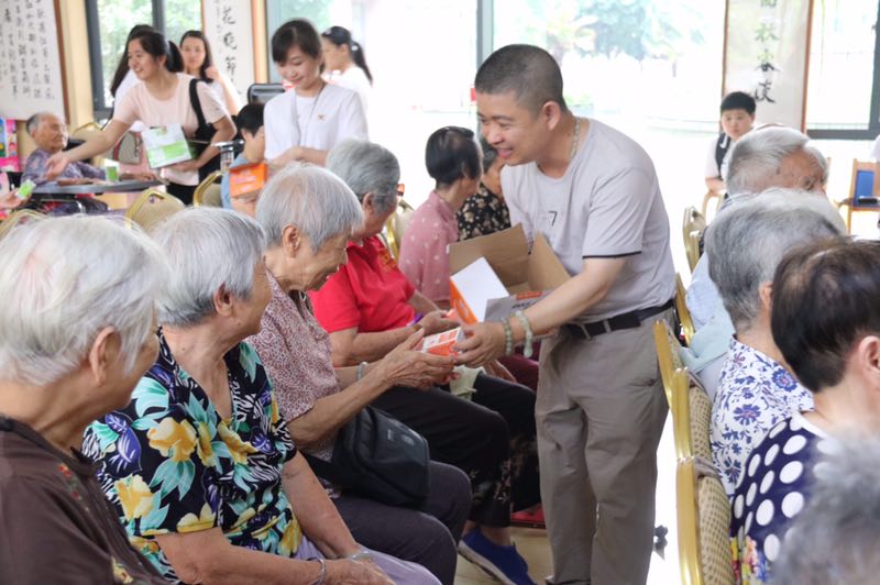 高校思想政治理论课怎么上?校内小课堂与社会大课程相结合,理论与实践相融合是创新性和可行性兼备的一个突破口。我国人口老龄化进程处于加速态势,在实践层面对国家经济增长、医疗卫生系统、社会家庭经济负担以及老龄高龄人群生活质量等方面形成了不同程度的挑战,鉴于此,此次思政课社会实践以探究"湛江市养老服务中心长者生活状况"为主题,师生们进行了深入细致的调查研究,并在2017级行管本科班许杰星同学的完美主持下为长者们献上了一场生动的文娱演出,在2019级行管本科班周斌同学的精心统筹下向长者们做公益捐赠。