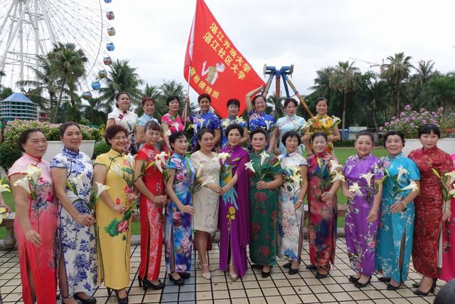 为展示当代中老年女性,热爱生活,热爱祖国和健康靓丽的优雅风采,弘扬东方国粹服饰的瑰宝魅力,6月15日上午,由国家形体模特导师、湛江社区大学何颖老师亲自编创的《旗香·醉荷》在湛江海滨公园时代广场精彩演绎。