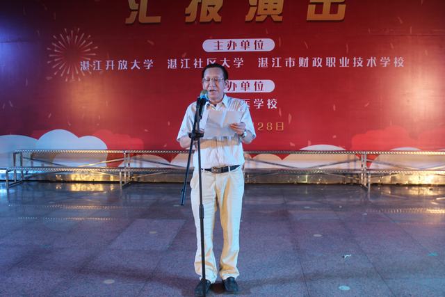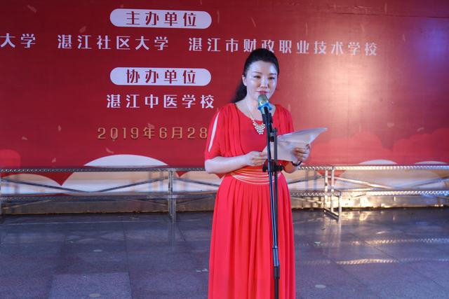 6月28日晚,湛江社区大学2019年春季学习成果汇演在霞山步行街开心广场举行,莅临本次典礼现场的领导嘉宾有:中共湛江市委老干部局、湛江市教育局、湛江中医学校的各位领导及我校领导班子成员。湛江开放大学教职工、湛江社区大学教师、学员与居民等四百余人参与了此次典礼。