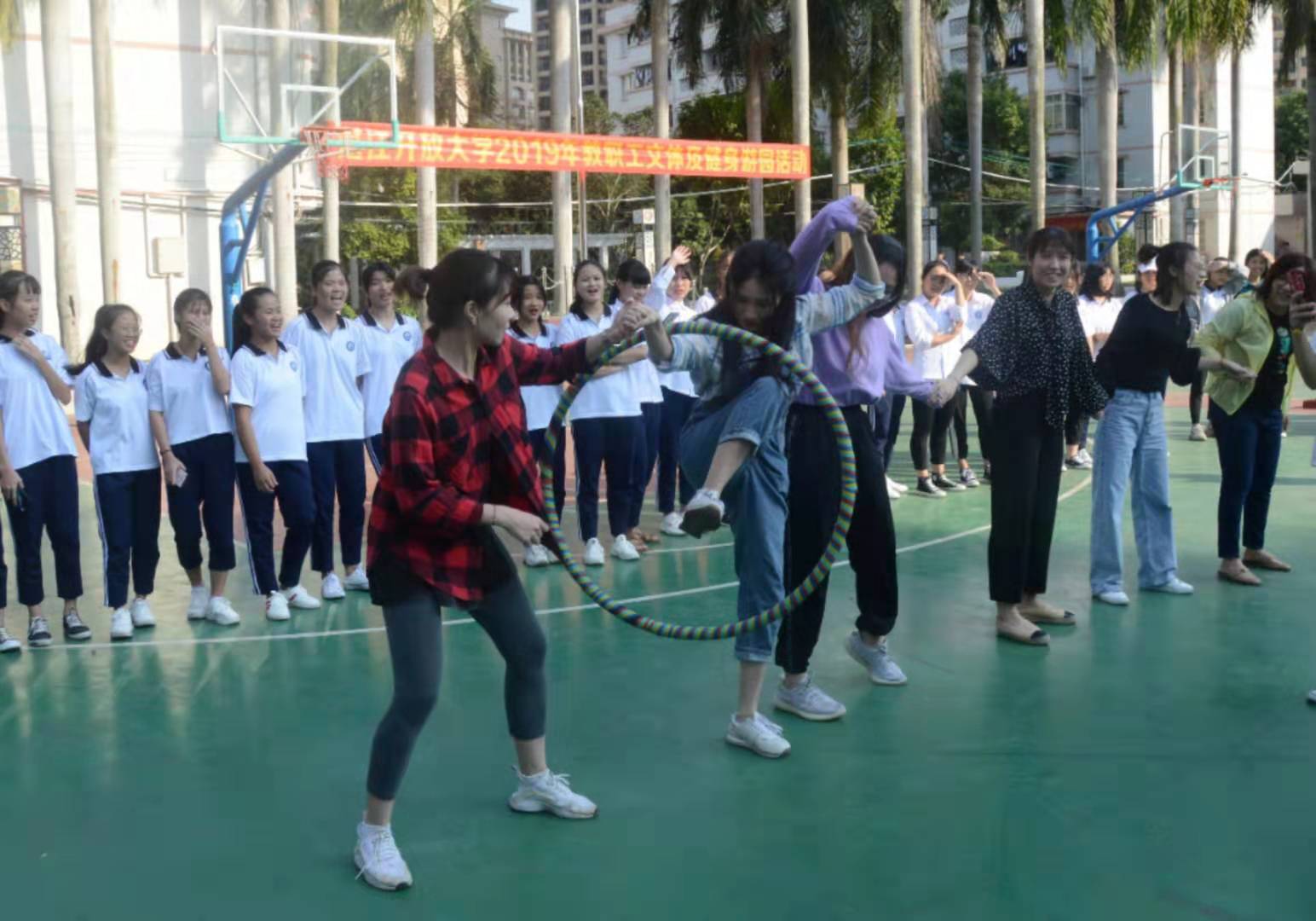 为了使学校教职员工拥有一个健康的身体和一份美丽的心情,以锻炼身体、缓解压力、增进同事间的凝聚力为前提,丰富精神世界,提升生活品质,真正达到"每天锻炼一小时,健康工作五十年,幸福生活一辈子"的目的。11月8日下午,湛江开放大学工会组织教职工在主校区操场开展文体及健身游园活动,学校党委书记、校长许文滔、纪委书记、工会主席江宇静及全体教职工近百人参加了活动。
