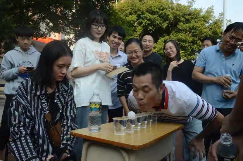 激烈的团体赛后,教职员工的身影踊跃在各个个人挑战项目前,游园活动在一片其乐融融中开展,猜成语、吹乒乓球、弹弹球等挑战项目,让大家的脸上洋溢着轻松而愉悦的笑容。