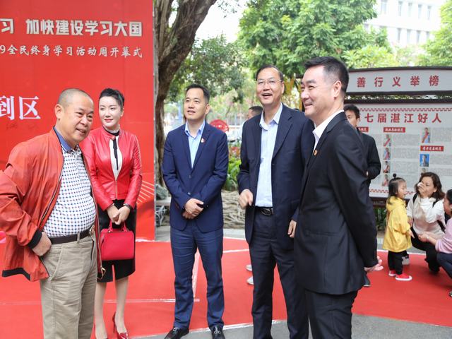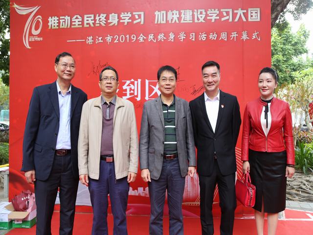 12月14日上午,湛江市第四届全民终身学习活动周开幕式在霞山区海宁社区家风家训广场举行。今年全民终身学习活动周以"推进全民终身学习,加快建设学习大国"为主题,由市教育局主办,湛江开放大学(湛江社区大学)承办,霞山区海滨街道海宁社区协办。湛江市教育局局长李更盛、副局长夏开晓及各县(市)教育局领导、开放大学校领导,各中职学校校领导和教师、学生代表、社区居民代表等共300余人参加了开幕式??皇接烧拷懈九疃行母敝魅斡嘀嬷鞒?。