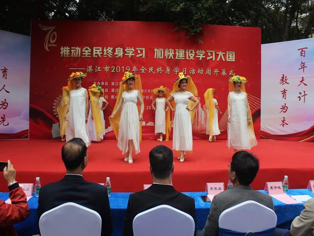 开幕式上,湛江开放大学(湛江社区大学)、湛江市财政职业技术学校带来了异彩纷呈的文艺汇演,让现场嘉宾和市民真正体验到终身学习的乐趣和硕果。湛江市教育局局长李更盛对"终身学习品牌项目"进行了颁奖、宣布启动终身学习活动周,湛江开放大学党委书记、校长许文滔致辞、对"百姓学习之星"进行了颁奖,市教育局副局长夏开晓作了讲话,"终身学习品牌项目"代表秦文燕、"百姓学习之星"代表符爱群分享了学习经验。