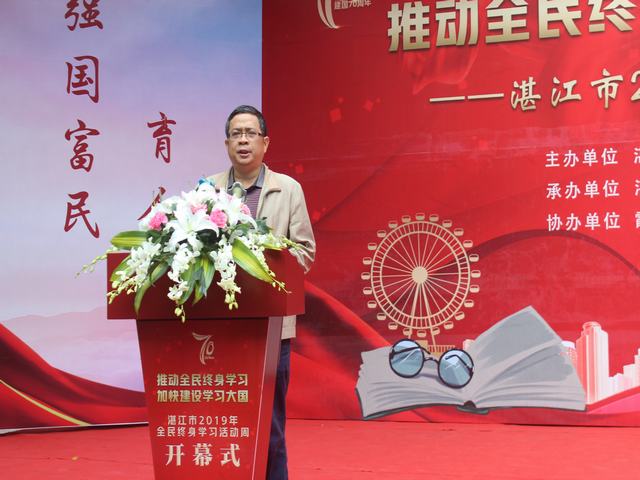 湛江开放大学党委书记、校长许文滔在开幕式致辞中表示,举办全民终身学习活动周,是为了深入学习贯彻党的十九届四中全会关于"构建服务全民终身学习的教育体系"会议精神,进一步构建全民终身学习体系,努力满足人民群众多样化、高质量教育的现实需求,在全市上下形成全民学习,终身学习,积极向上的社会风气。学校尽全力做好了全民终身学习活动周开幕式的各项准备工作,同时也将持续保障活动周其他相关事项的顺利推进。