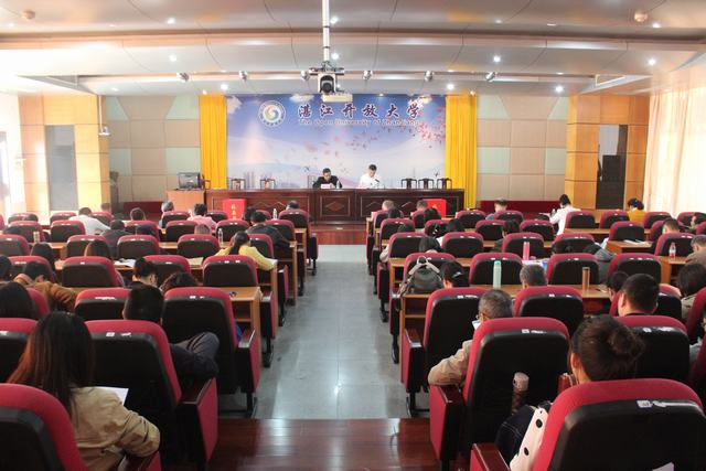 12月26日上午,按照市委统一工作部署,湛江开放大学在学校11楼多功能报告厅召开2019年领导班子年度考核民主测评会,市教育局副局长夏开晓、市委组织部干部三科李论、市教育工委钟宇靖出席会议,学校干部职工共计95人参加?;嵋橛墒薪逃指本殖は目鞒?。