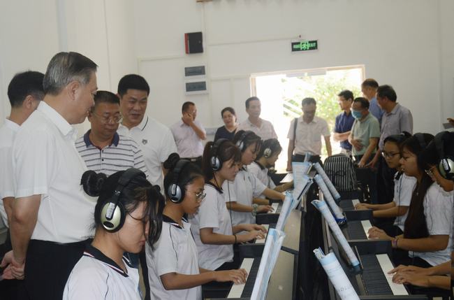 我校党委书记、校长许文滔对朱华雄主席、袁新中副局长一行的到来表示热烈的欢迎和感谢!并作了学校情况介绍和学校教师技能竞赛取得的成绩汇报。