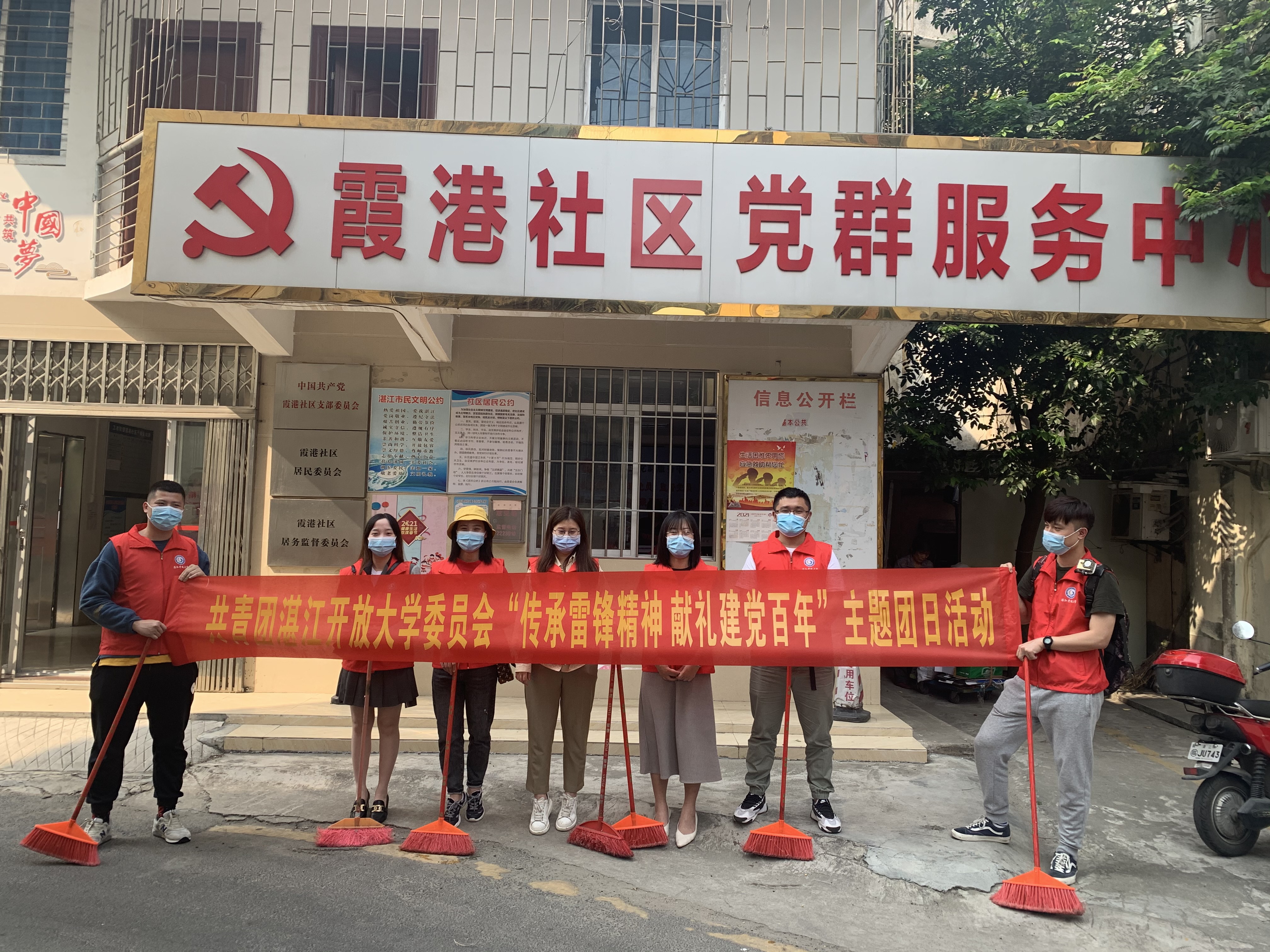 (二)3月26日下午,我校教工团支部组织7名团员代表前往霞港社区党群服务中心开展志愿清扫服务活动,与社区志愿者一同对老旧社区街道进行清理,结合“学习党史、学习雷锋精神”的宣讲,向社区居民传递“?;せ肪澄郎游易銎?,从身边做起,不乱扔垃圾、不乱堆乱放、共同维护社区环境”的理念。