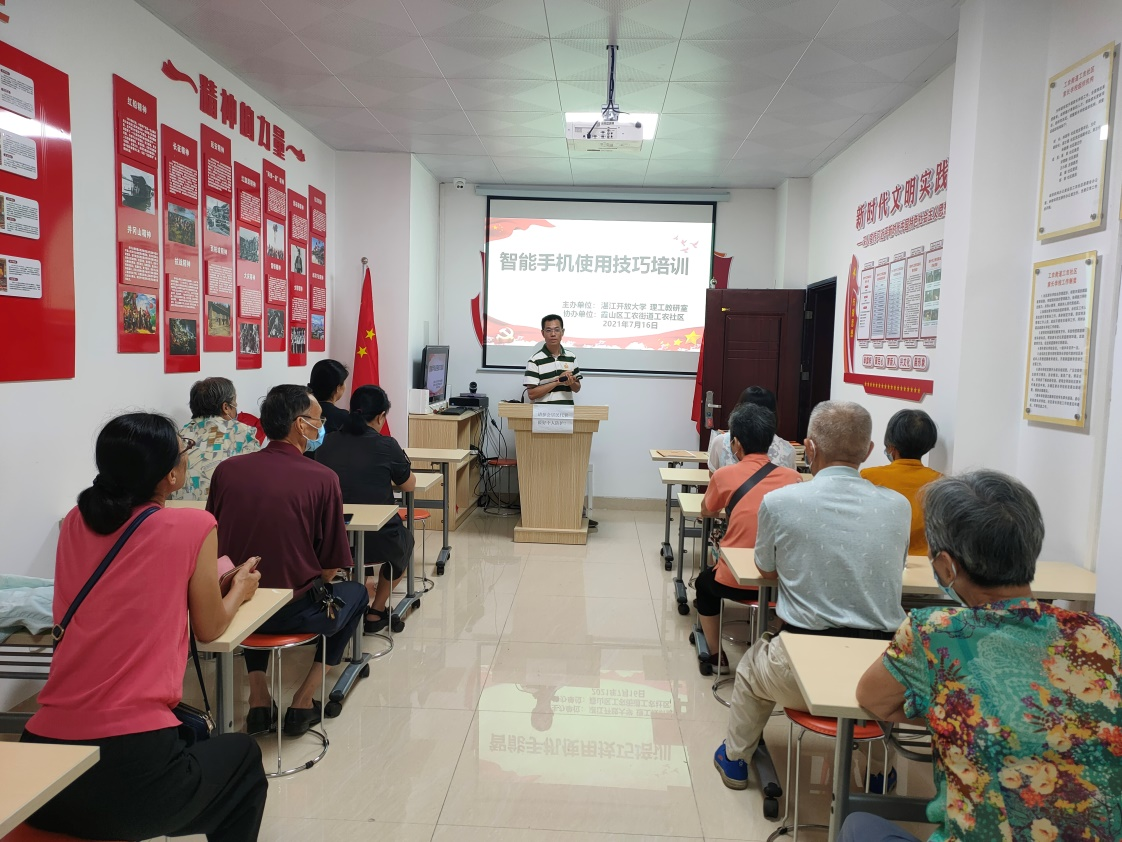 为贯彻落实学校党委关于"我为群众办实事"实践活动总体部署,7月16日上午,我校理工教研室老师来到了霞山区工农街道工农社区,和社区里的二十多位兴趣班的学员进行了一场别开生面的智能手机使用技巧分享活动。理工教研室老师充分利用熟悉信息技术的特长,向学员们讲解了智能手机的硬件组成及性能指标、手机操作系统、手机常用APP等内容。学员们对手机的个性化设置部分最感兴趣,提问最多,老师们都耐心解答并为学员解决了手机操作的难题。在分享交流中,还针对老年朋友个性化的需求,向他们介绍了手机输入法的使用、截屏的使用、个人热点的设置、生物识别和密码等高级应用。