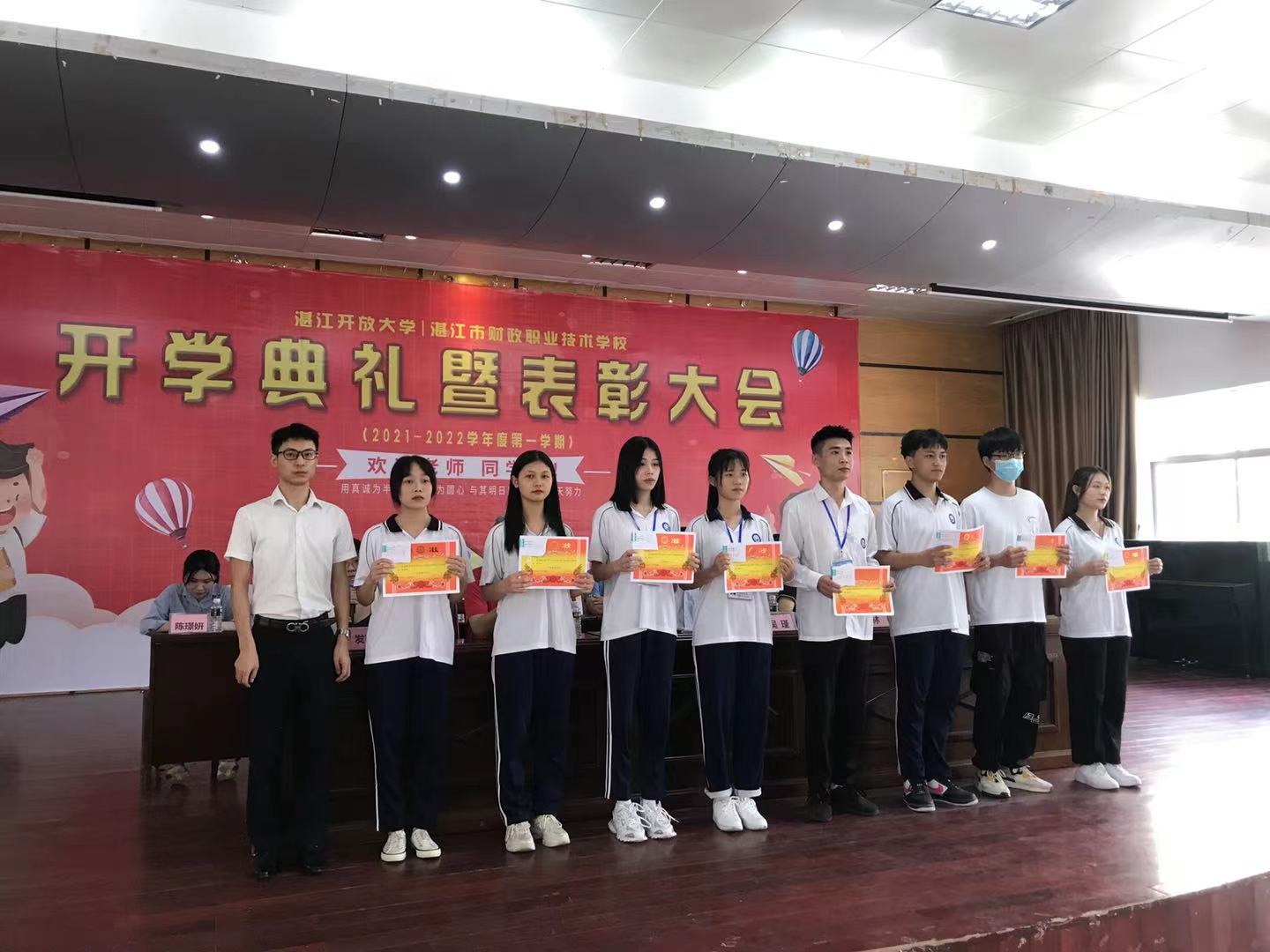 校领导为湛江市优秀学生干部、湛江市三好学生、湛江市学雷锋标兵、湛江市优秀共青团员、湛江市职业院校专业技能大赛一二三等奖、学前教育友才奖学金、优秀实习生、学生会优秀部长、十佳部长、优秀干事、校内各班级三好学生、积极分子获得者颁奖。