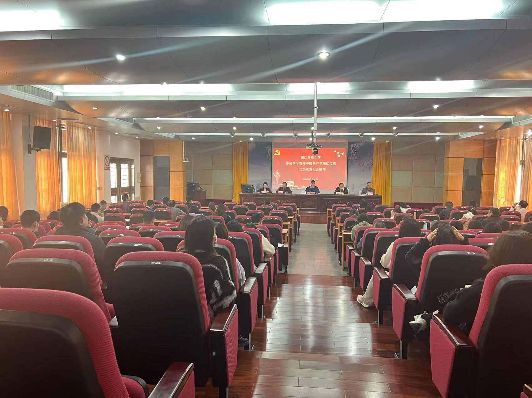 (图为校党委书记、校长许文滔传达学习党代会精神)