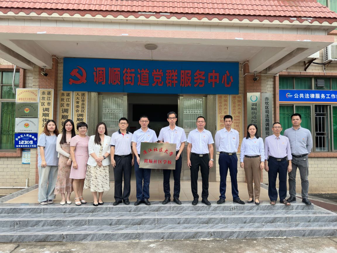 10月13日上午,湛江开放大学、湛江社区大学、湛江开放大学第二、第三党支部联合赤坎区调顺街道办,在赤坎区调顺街道党群服务中心举行了授牌仪式,成立了湛江社区大学调顺社区学校。