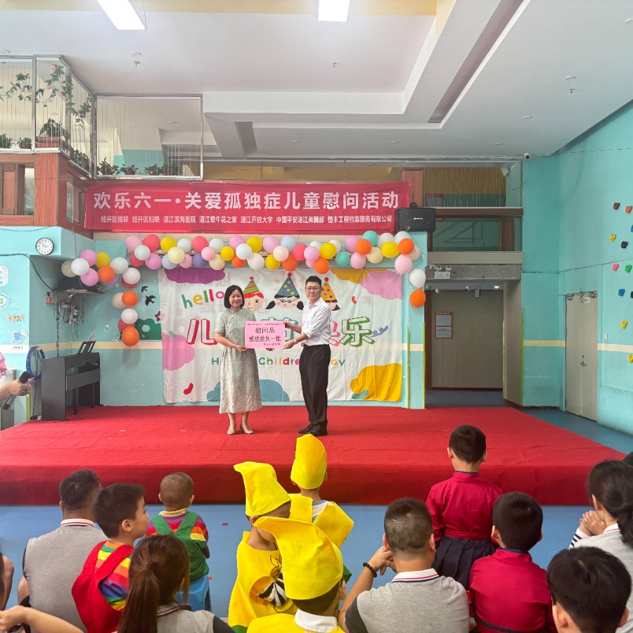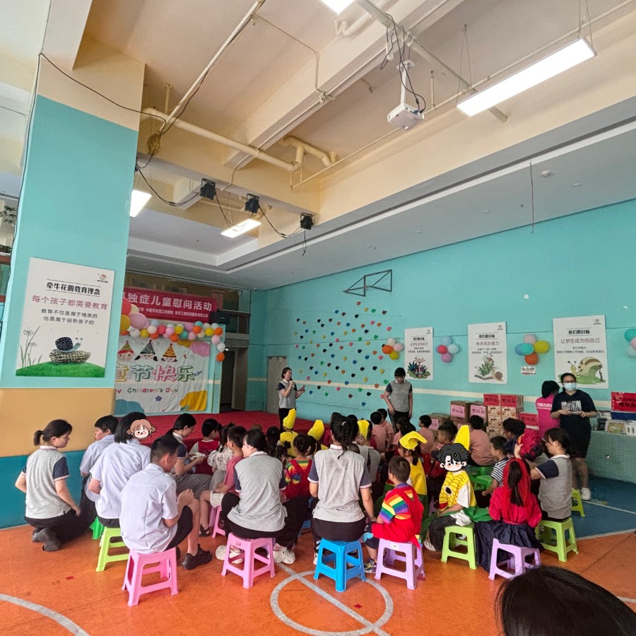 5月30日下午,我校第五党支部和部分师生,到湛江牵?;ㄖ?,开展了欢乐六一·关爱孤独症儿童慰问活动。