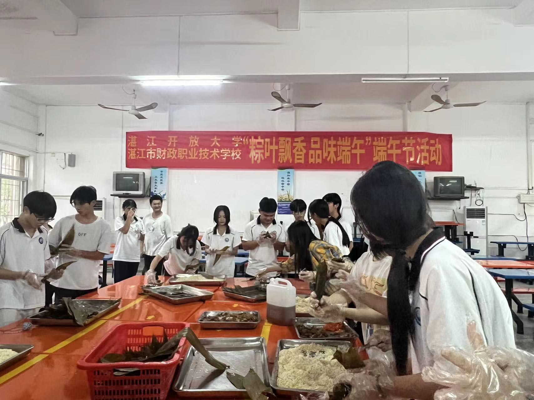五月五,粽飘香。为弘扬中华民族优秀传统文化,丰富教职工文化生活,6月5日下午,湛江市财政职业技术学校和湛江开放大学团委在学校饭堂联合举行“粽叶飘香、品味端午”包粽子活动。