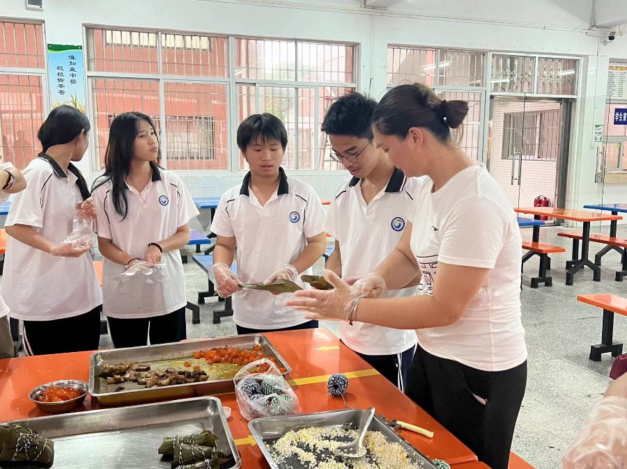在一阵阵欢声笑语中,粽子越堆越多,大家包了满满三大盘粽子。这些粽子都分给了老师、学生、执勤的保安,为他们送去一份节日的问候。