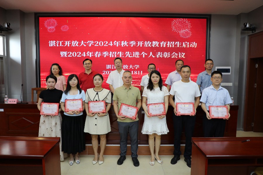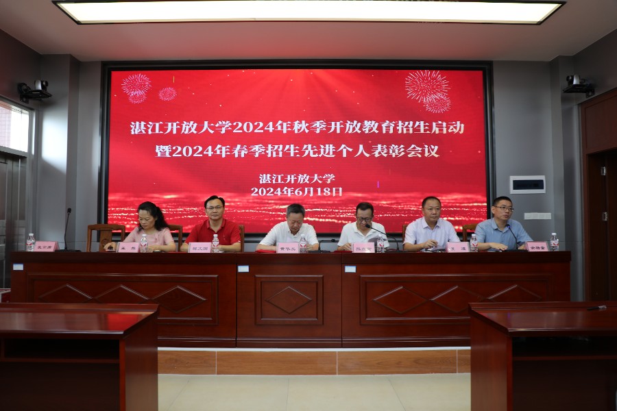 6月18日上午,湛江开放大学在主校区教学楼①8楼阶梯教室,召开2024年秋季开放教育招生启动暨2024年春季招生先进个人表彰会议。