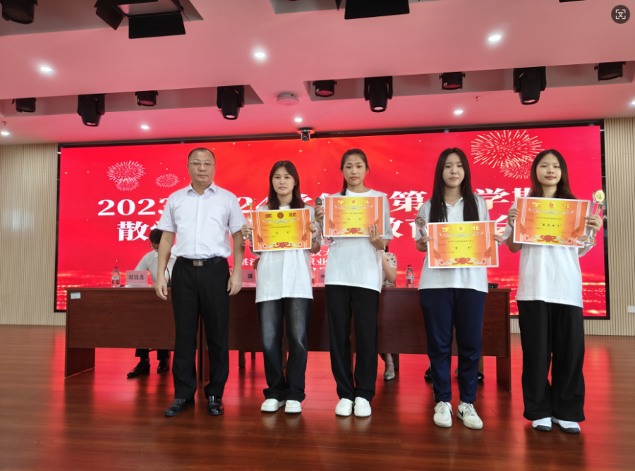 散学典礼上,我校表彰了本学期表现优异的学生。德育教研室副主任唐伟星同志总结了学生管理工作。