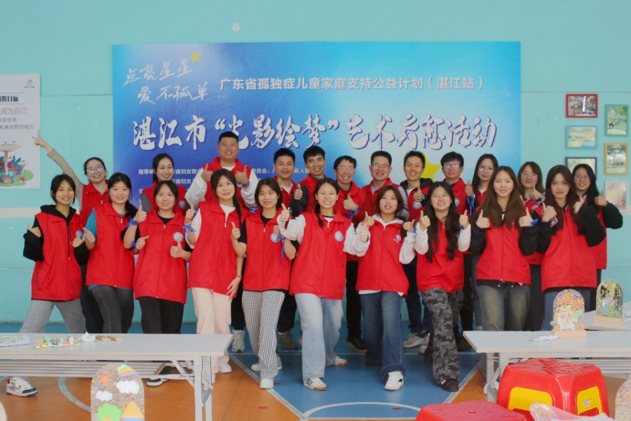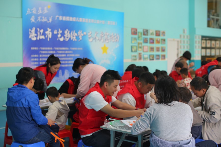 4月2日,第十八个世界孤独症日,一场以“点亮星星 爱不孤单”为主题的湛江市“光影绘梦”艺术疗愈活动,在湛江市牵?;ㄖ叶蹈粗行奈屡傩?。本次活动由广东省妇女联合会、广东省卫生健康委员会和广东省残疾人联合会联合主办,我市相关部门承办、协办。我校师生代表作为志愿者参与了此次活动,并将由我校中职学生亲手制作的手工礼物送给了活动现场的孩子们。