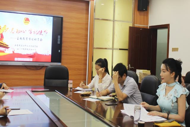 为深入学习贯彻习近平总书记的重要讲话精神和"不忘初心、牢记使命"主题教育工作会议精神,全面贯彻落实中央、省委、市委以及学校党委对主题教育的目标要求,9月20日下午,学校团委组织教工团支部青年教职工开展"不忘初心、牢记使命"主题教育动员学习会。学校纪委书记江宇静出席会议并作讲话,全体教工团支部成员参加会议,会议由学校团委副书记余念主持。