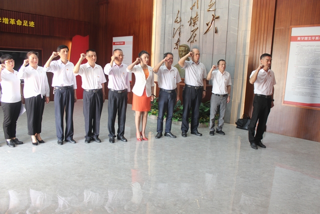 黄学增烈士纪念亭里,大家满怀虔诚与敬意瞻仰烈士遗像,随后,许文滔同志领誓,大家面对党旗,庄严举起右手、紧握拳头,重温入党誓词,用铿锵有力的声音表达了对党的忠诚和为党的事业奋斗终生的决心。接着,在许文滔同志的带领下,大家认真参观了文史馆,深入了解了黄学增烈士的成长、革命事迹,深深体会到革命历程的曲折艰难和革命胜利的来之不易,更进一步坚定了理想信念。