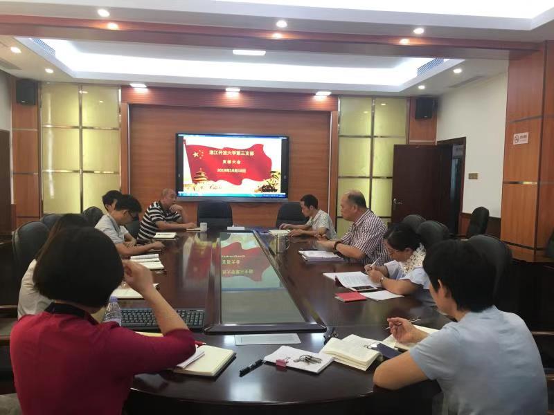根据我???quot;不忘初心、牢记使命"主题教育的实施方案,10月18日上午,湛江开放大学第三党支部根据所制定的支部学习方案,在学校第二会议室组织召开了"不忘初心、牢记使命"主题教育集中学习研讨会议。本次学习的主题是:坚定"四个自信"?;嵋橛芍酥痉纪局鹘?,第三党支部党员10人参加了学习。