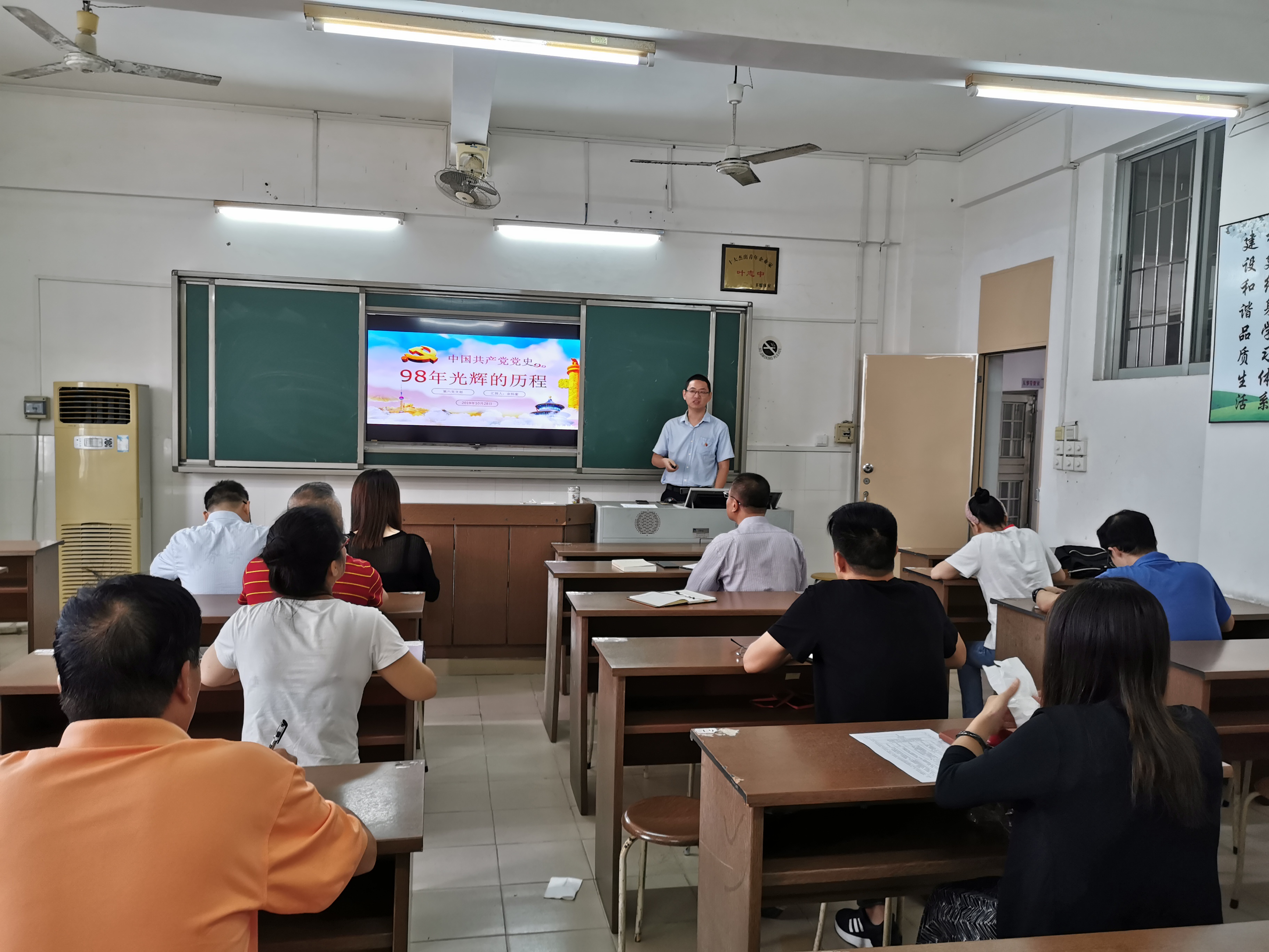 根据我校第六党支部 "不忘初心、牢记使命"主题教育学习安排计划要求,10月28日上午,中共湛江开放大学委员会第六党支部在802教室开展"不忘初心、牢记使命"主题教育专题党课。第六党支部书记余扬奎以《中国共产党党史--98年光辉的历程》为题,讲授专题党课,余扬奎同志从党史发展脉络及学习意义九十八年艰辛与辉煌光明的使者、幸福的源泉锻造维护核心对党忠诚的坚定信念及学党史心得体会等五个方面追忆党的光辉历史,缅怀党的丰功伟绩,鼓励党员领导干部学党史、学新中国史。学校副校长吴瑾、支部部分党员等13余人现场参加,活动由支部书记余扬奎主持。