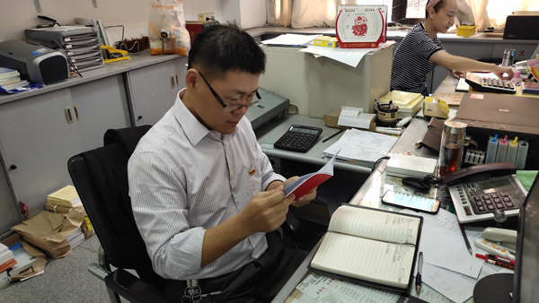 根据我校第六党支部 "不忘初心,牢记使命"主题教育学习计划,10月31日上午,湛江开放大学第六党支部两个党小组分别在学校一楼招生就业办办公室、703教室开展"不忘初心,牢记使命"主题教育集中学习及党小组会议,各党小组全体党员及入党积极分子与会学习。第一党小组组长陈沉带领大家学习了《新时代要有新气象,更要有新作为》(《习近平关于"不忘初心、牢记使命"论述摘编》的重要章节)、第二党小组组长郭昱良带领大家学习了《坚持以人民为中心,把群众观点和群众路线深深植根于思想中、具体落实到行动上》(《习近平关于"不忘初心、牢记使命"论述摘编》的重要章节)。各党小组成员结合自己工作情况,依次做了交流发言。