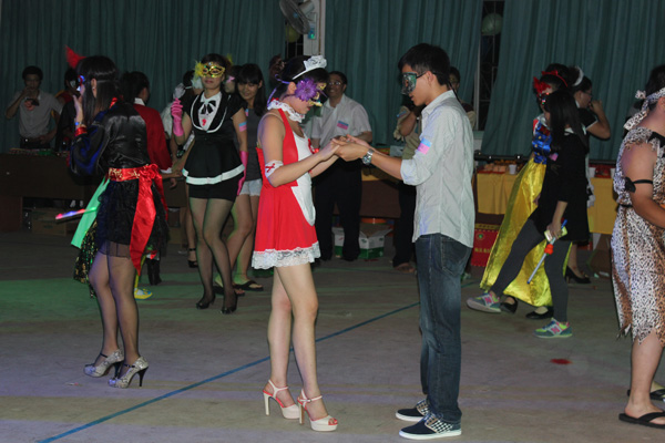 舞会在主持人介绍万圣节来历之后开场。随后,各式新颖的节目层出不穷,动听的歌曲、优美的华尔兹、激情的节拍、无尽的摇摆,整个会场洋溢着年轻的活力、充满着狂热的激情。同学们或身着盛装,或带着面具,化妆成各种角色,他们的怪异面具,各式各样精美的服装,让现场观众都认不出是谁,也给会场的气氛增添了无尽的神秘感。会上还进行了游戏和抽奖活动。此次化妆舞会别开生面,乐趣无穷,不仅形式别致,还给陌生同学间的相识提供了一次难得的机会。