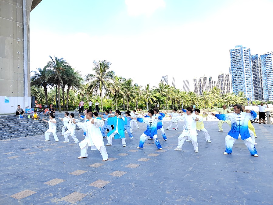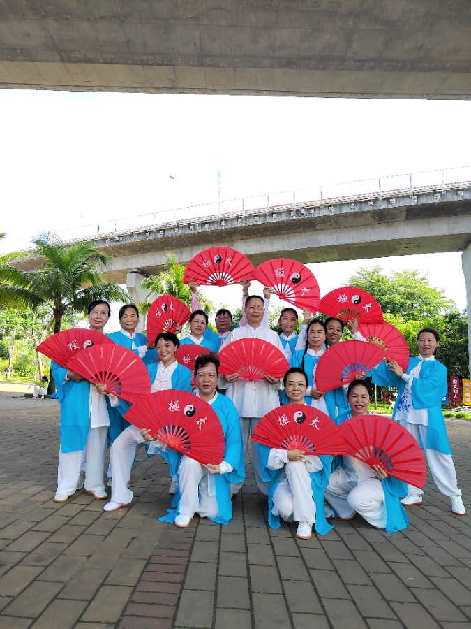 兴趣班学员在公园展示太极拳
