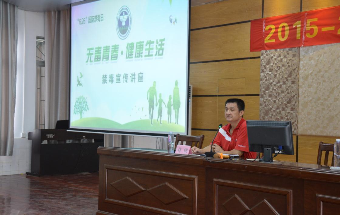 根据市教育局《转发关于认真组织开展"6·26"国际禁毒日期间禁毒宣传教育活动的通知》(湛教办[2016]187号)等文件精神,我校在全校范围内积极开展了一系列禁毒宣传教育活动。为了总结本次校园禁毒宣传教育活动,6月30日上午,主校区在礼堂举行了校园禁毒宣传教育活动总结会,主校区全体师生参加总结会,大会由中专部林锦主任主持。林主任主要从毒品的危害性、如何有效远离毒品等方面给同学们做了讲解。通过此次宣