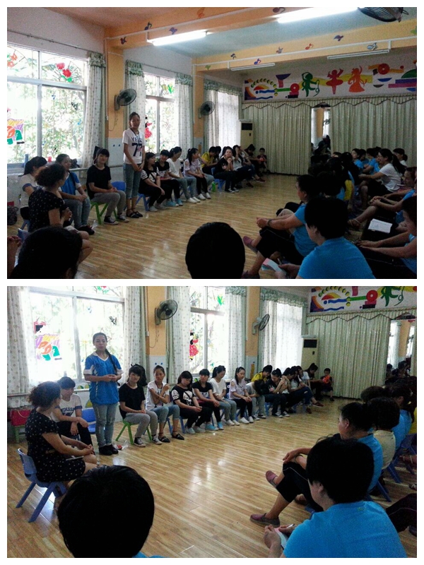 见习生在给小朋友们上课