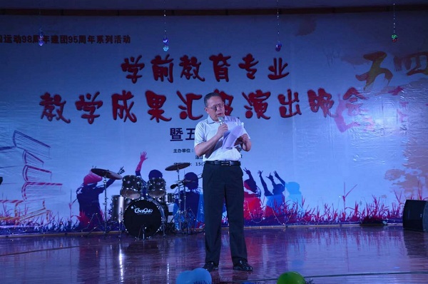 为纪念"五四"运动98周年建团95周年,5月4日晚,在主校区(湛江市财政职业技术学校)礼堂举办了"学前教育专业汇报演出晚会暨五四表彰晚会"。学校党委副书记饶腊年、副校长尤祖国、王康生、李聪睿、部分中层干部、嘉宾、学生家长以及400多名师生观看了演出。晚会开始前,学校党委副书记饶腊年宣读了五四表彰决定,出席晚会的学校领导为获得优秀的青年学生颁奖。李聪睿副校长为晚会致辞。本次晚会展现我校学前教育专业的