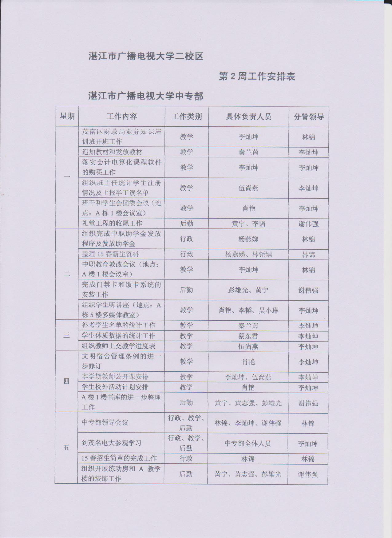 - 主校区(湛江市财政职业技术学校)2013-2014年度第二学期课程表1 2014.3.5(计算机考证结束前执行,约至3月底止)