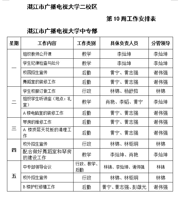 - 主校区(湛江市财政职业技术学校)2013-2014年度第二学期课程表1 2014.3.5(计算机考证结束前执行,约至3月底止)