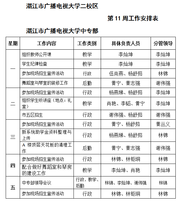 - 主校区(湛江市财政职业技术学校)2013-2014年度第二学期课程表1 2014.3.5(计算机考证结束前执行,约至3月底止)