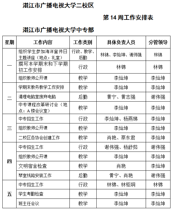 - 主校区(湛江市财政职业技术学校)2013-2014年度第二学期课程表1 2014.3.5(计算机考证结束前执行,约至3月底止)
