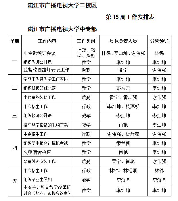 - 主校区(湛江市财政职业技术学校)2013-2014年度第二学期课程表1 2014.3.5(计算机考证结束前执行,约至3月底止)