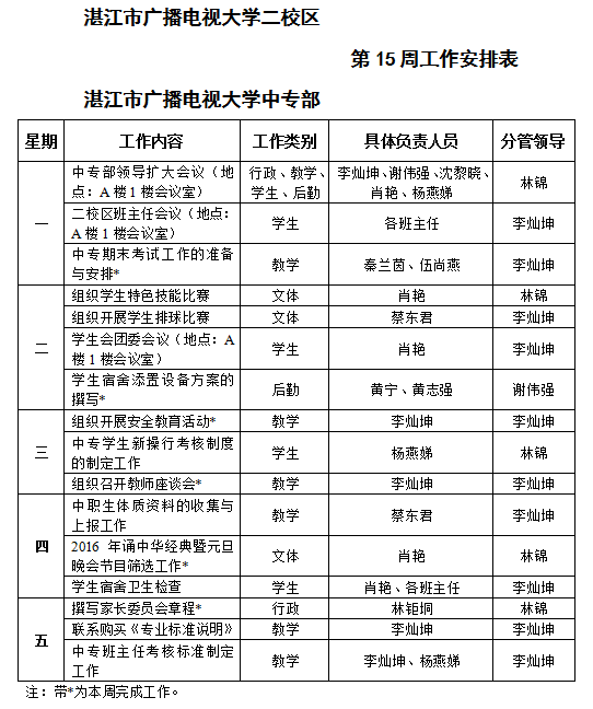 主校区和中专部第15周工作安排