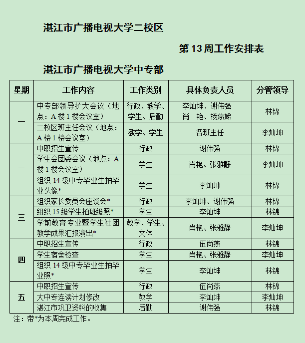 - 主校区(湛江市财政职业技术学校)2013-2014年度第二学期课程表1 2014.3.5(计算机考证结束前执行,约至3月底止)