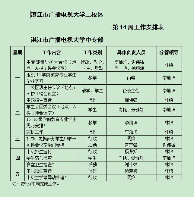 - 主校区(湛江市财政职业技术学校)2013-2014年度第二学期课程表1 2014.3.5(计算机考证结束前执行,约至3月底止)