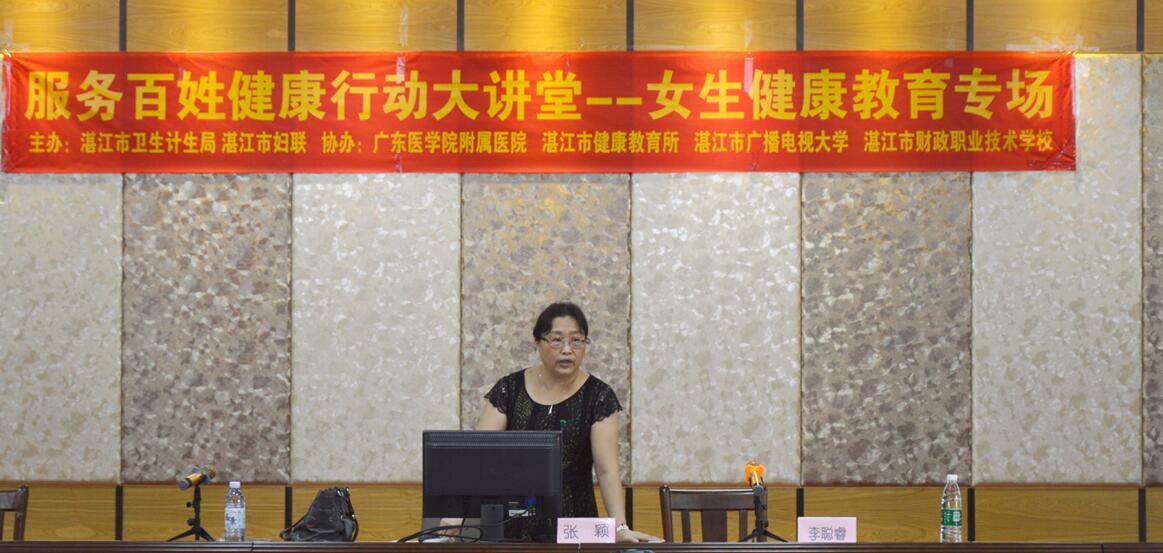 当今社会上女生遇害事件越发频繁,很多女生涉世未深,缺乏自我?;ひ馐?,因此遇到危险惊慌失措,不能很好地?;ぷ约骸M贝τ谇啻浩诘呐?,性生理发育还没有完成成熟,而且由于传统性观念的影响,她们对性知识还不是很了解。为了使主校区女生身心得到更好的发展,更好地?;ぷ约?,2015年9月22日下午4:30,由湛江市卫生计生局和湛江市妇联主办,广东医学院附属医院、湛江市健康教育所、湛江市广播电视大学和湛江市财政职业技术学校协办的"服务百姓健康行动大讲堂--女生健康教育专场"讲座如期在主校区举行。