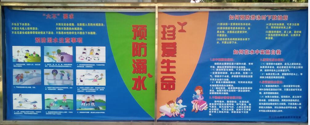 我校本次校园防溺水教育宣传活动宣传形式多样,比如校园橱窗宣传、主题班会教育宣传、微信平台和QQ平台宣传等。通过采取以上多种切实有效的宣传教育措施,让同学们意识到本次校园防溺水教育宣传活动的重要性,从而提高学生的安全意识。